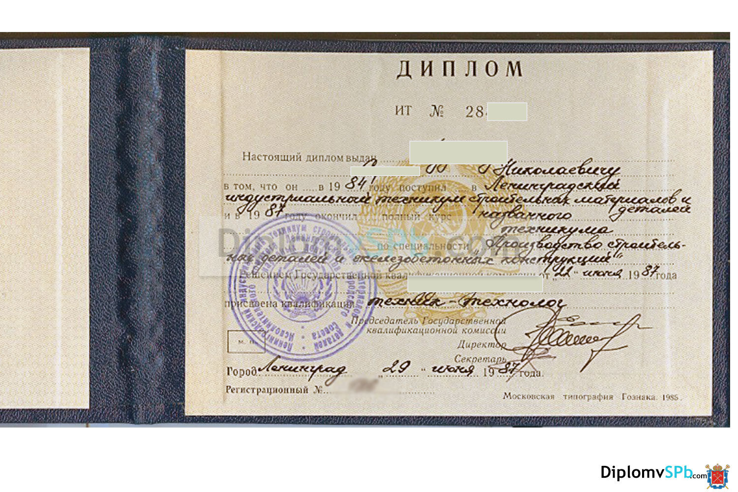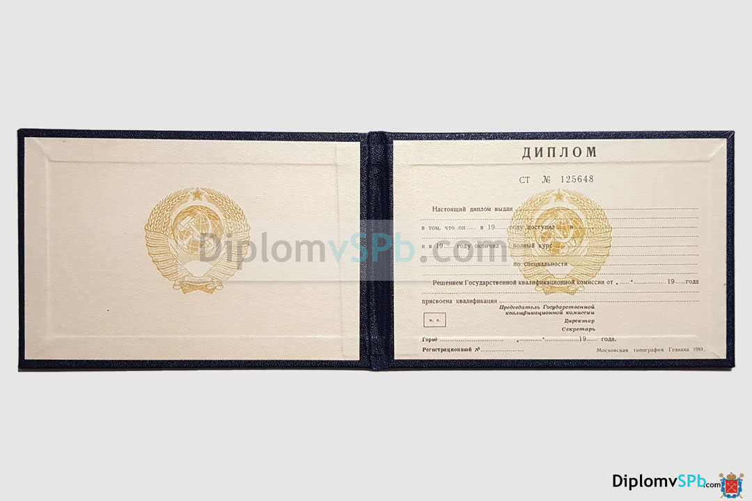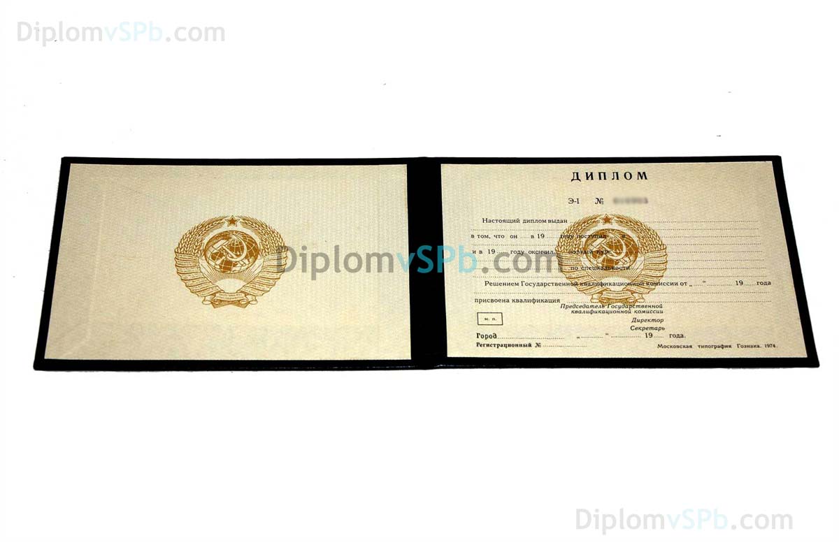 На нашем сайте Вы можете купить диплом СССР старого образца из вуза, техникума или пту, выданного в 1970-х, 1980-х годах вплоть до 1996 года. Диплом будет выполнен на оригинальном бланке Гознак с гербом СССР на развороте, заполнен с учетом всех образовательных стандартов и требований к заполнению дипломов старого образца: данные вносятся от руки чернильным пером — точно также заполнялись корочки в советских техникумах и ВУЗах, а приложение — на печатной машинке или от руки (зависит от конкретного учебного заведения и Ваших пожеланий). Ваш документ будет выглядеть так, как если бы Вы получили его в учебном заведении в то время! Изготовление занимает 1 день, доставка курьером без предоплаты.